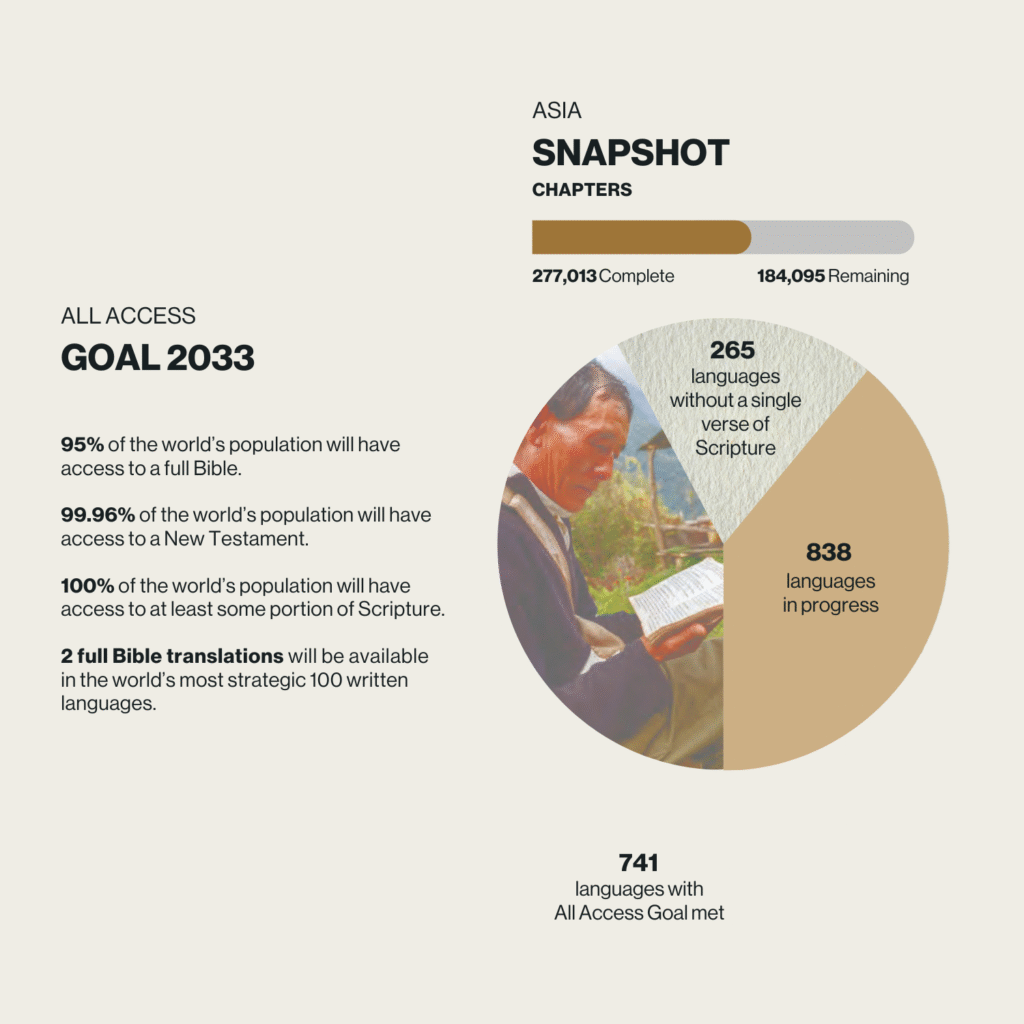Saat ini, terdapat 251 kelompok bahasa di Asia Timur. Namun, visi ini melampaui angka tersebut, dengan tujuan menjangkau 1.844 kelompok bahasa di seluruh Asia pada tahun 2033. Garis waktu yang ambisius ini menegaskan satu kebenaran yang tak terbantahkan: bukan hanya cita-cita luhur yang penting, melainkan tindakan nyata yang dapat mewujudkannya.